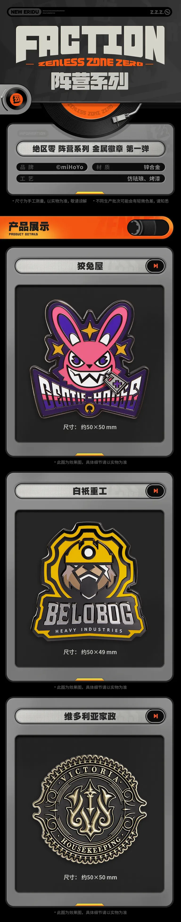 [ZENLESS ZONE ZERO] Faction Series Metal Badge Vol.1